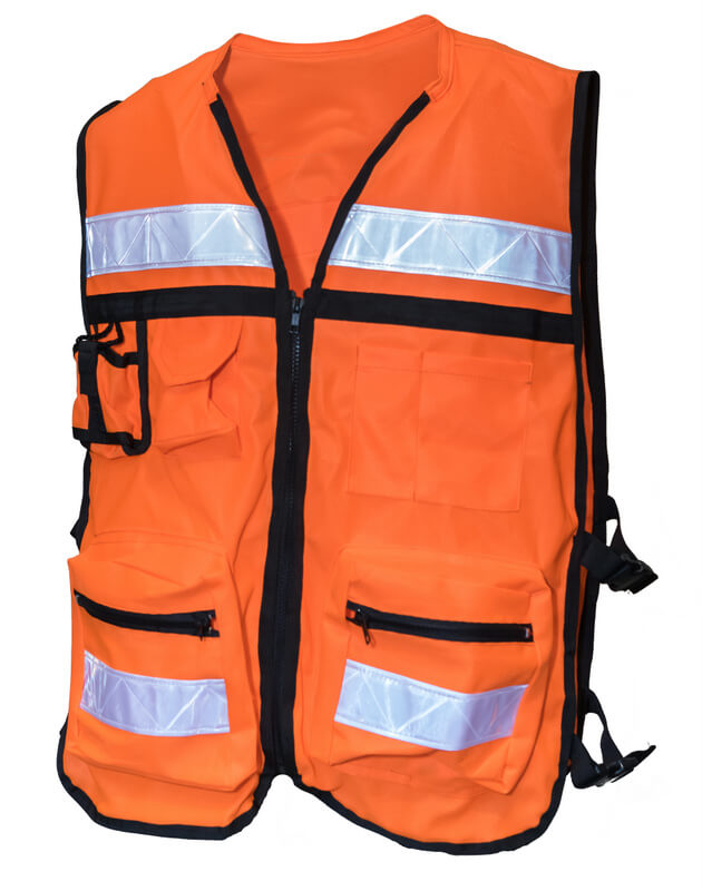 Chaleco tipo rescatista, unitalla, con zipper frontal para cierre, cuenta con portagafete, 2 bolsas frontales, bolsa porta celular o radio, diseñado con cintas reflejantes al frente y espalda